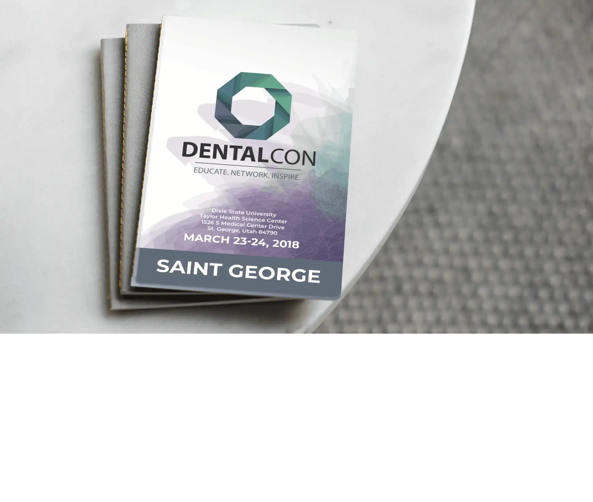We have helped build this brand from the ground up. We took into account the purpose of DentalCon to create their brand. The circular abstract represents dental professionals from all fields coming together as one to learn and educate one another on progression within their expertise. The colors used represents renewal, energy, depth, wisdom, stability, power, creativity, and ambition. This brand was exactly what they wanted and we are pleased with the ending results!
